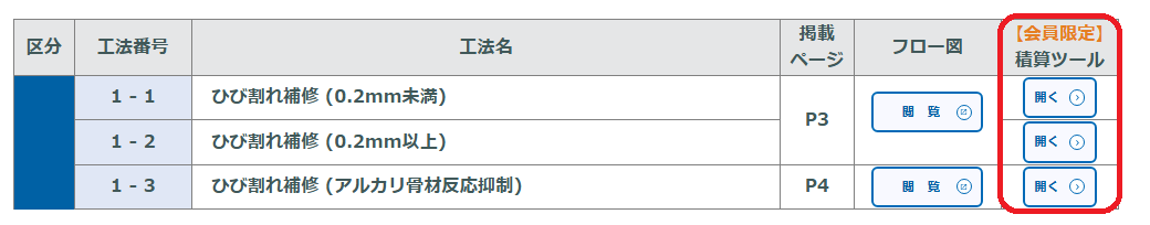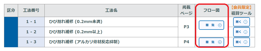 工法一覧ページのフロー図の閲覧ボタンをクリックして、工法ごとのページをチェックしてみてください!