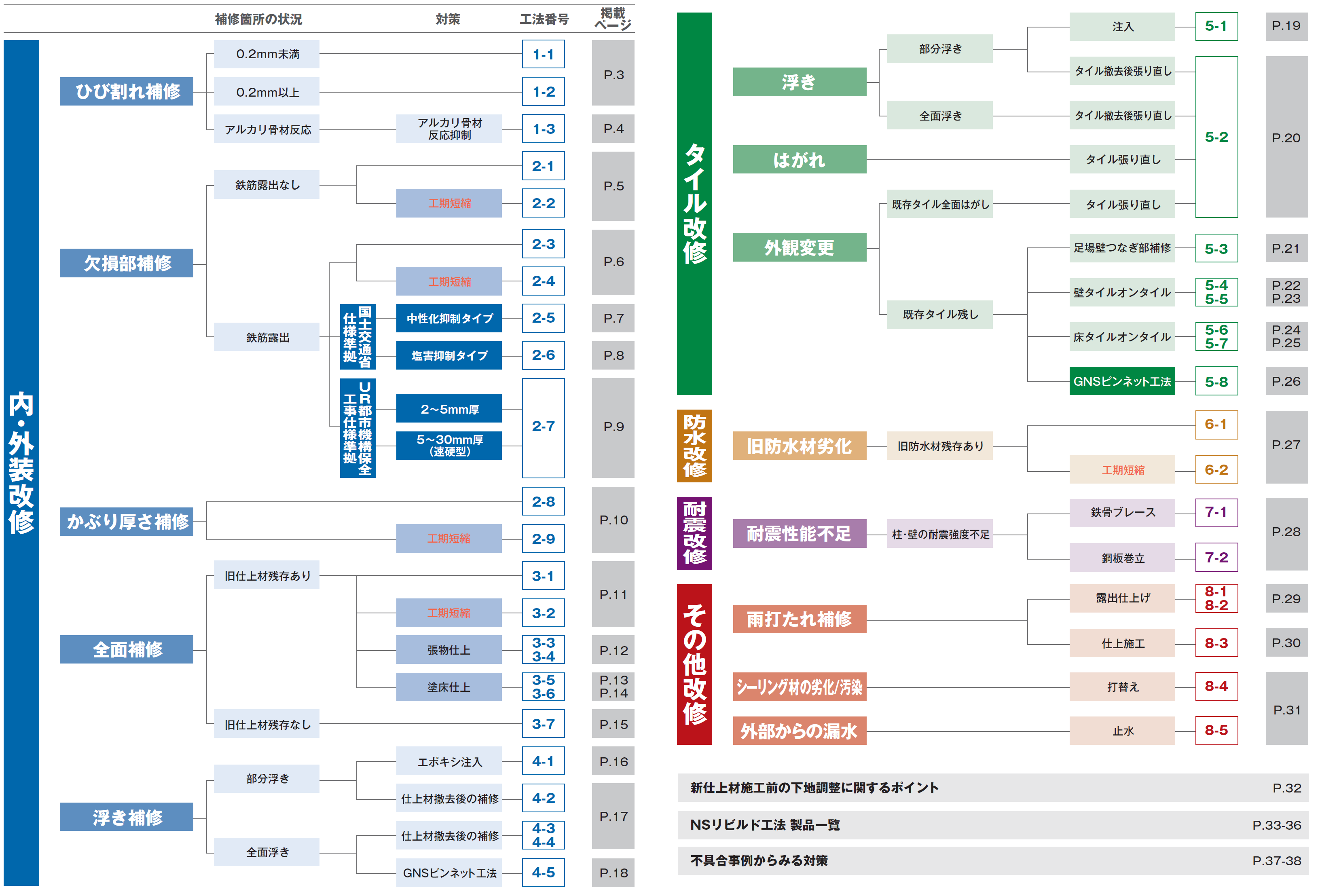 どの工法を使用するべきか選択する際に使用する、工法の一覧ページ