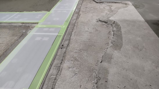 短期休暇中の限られた工期内で、既存Pタイル撤去後の激しい段差の解消をする必要があった。